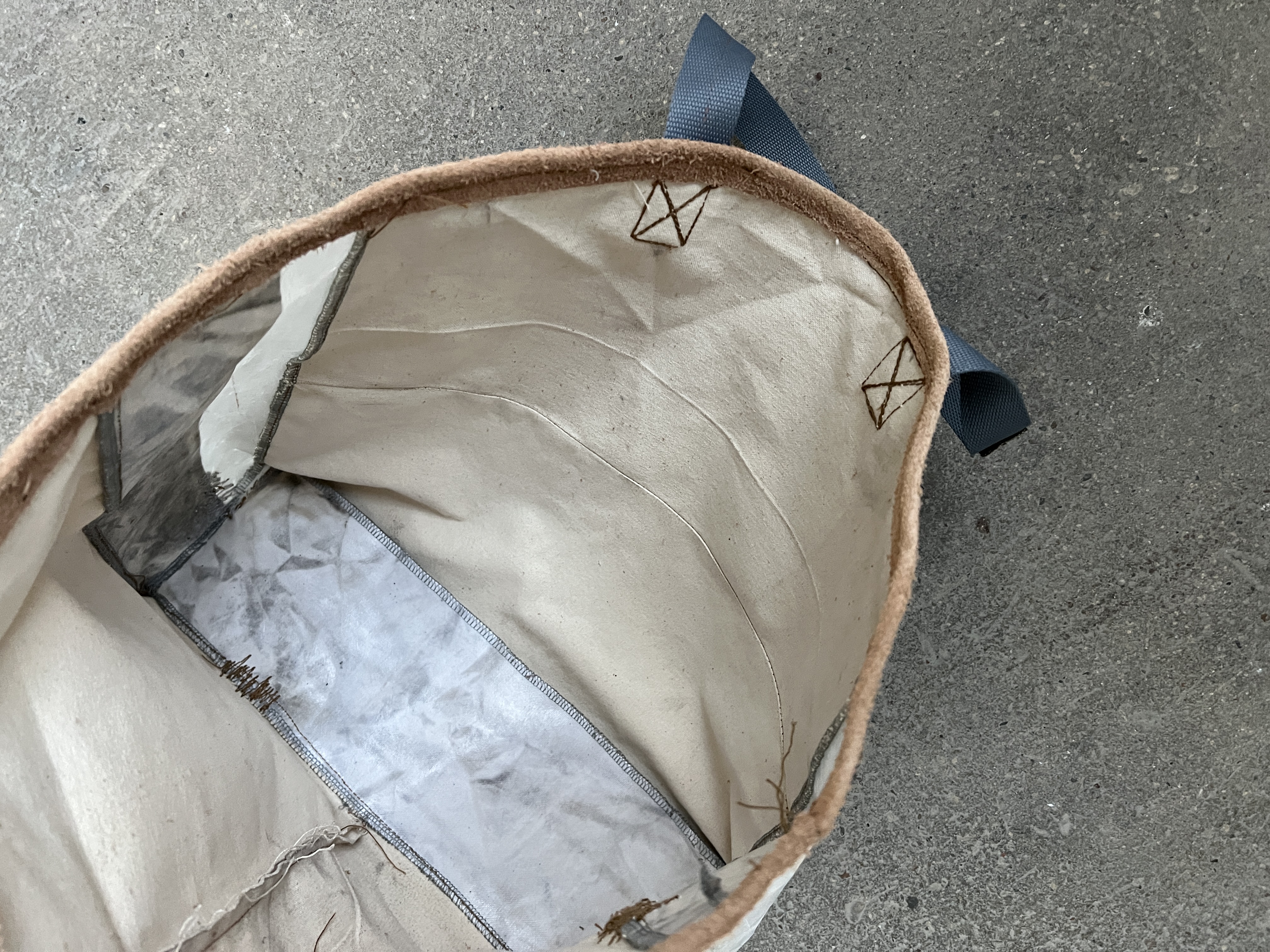 Side panels made of plasticized canvas material that has soaked in iron for three months. Base made from plasticized canvas.