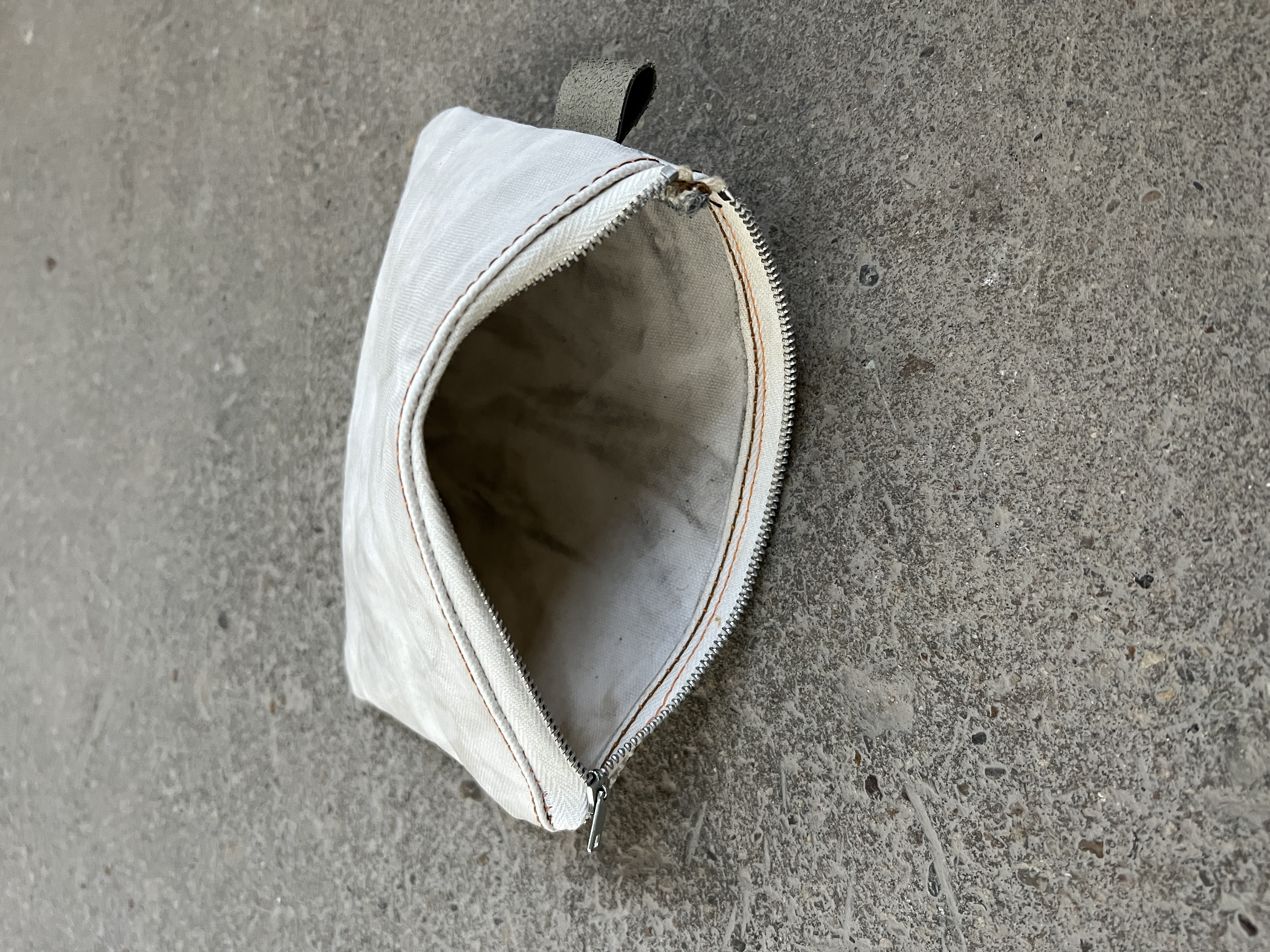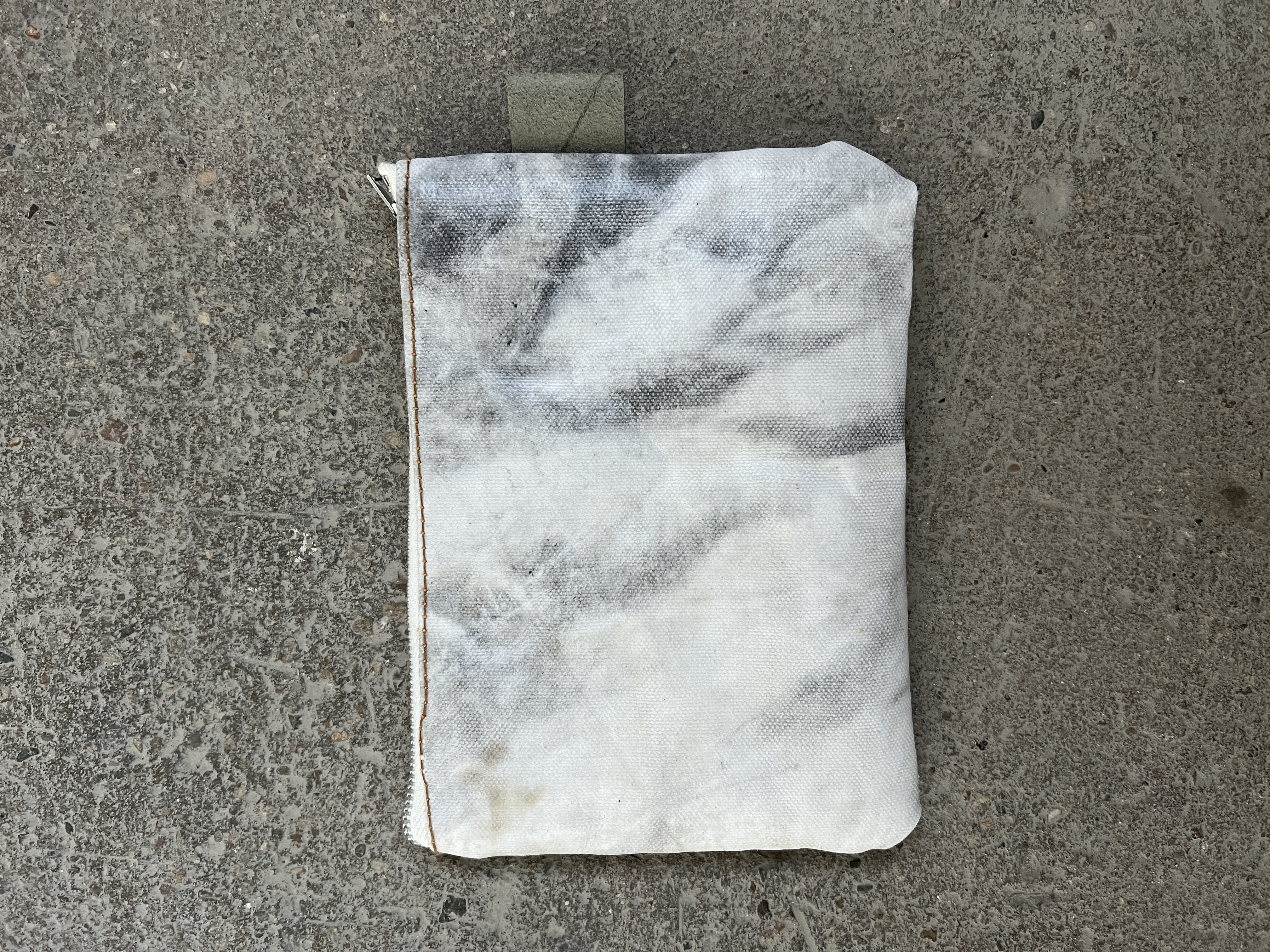 Two Panel Pencil case constructed from Plasticized heavyweight canvas soaked in iron for three months. Canvas then suspended between two layers of heavyweight canvas.
